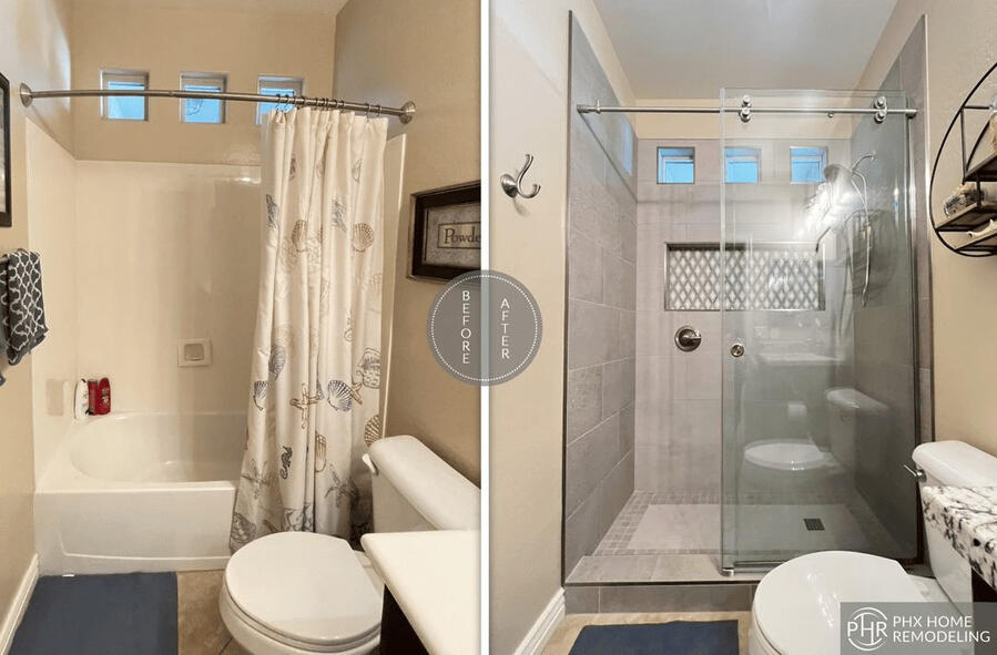 At Phoenix Home Remodeling, we recognize that your bathroom is more than just a utilitarian space – it's a sanctuary where you start and end your day. Our shower remodeling services are designed to elevate your bathroom experience by blending style and functionality seamlessly. By incorporating the latest trends and innovative solutions, we can create a shower space that not only meets your practical needs but also adds a touch of elegance to your home.Achieving the perfect balance between form and function is a hallmark of our shower remodeling services. We believe that a beautiful shower space should also be highly functional and tailored to your lifestyle. Our expert designers take into account factors such as storage solutions, accessibility features, and optimal layout to ensure that your new shower not only looks stunning but also enhances your daily routine.We believe that the foundation of a successful shower remodeling project lies in the quality of materials used. That's why we source our materials from trusted suppliers known for their durability, aesthetics, and longevity. From high-end tiles to premium fixtures, every element is chosen with the utmost care to ensure that your new shower not only looks stunning on day one but maintains its beauty for years to come.